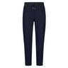 Pantalone Liu Jo da donna, in cotone elasticizzato e lurex, vita normale, cintone con coulisse in vita, tasche sui fianchi e con bottone sul retro, vestibilità regolare, colore denim blu.