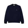 Felpa Lacoste da uomo a girocollo, logo sul petto a contrasto, maniche lunghe, collo, polsi e orlo rifiniti con motivo a coste, vestibilità regular, colore Blu