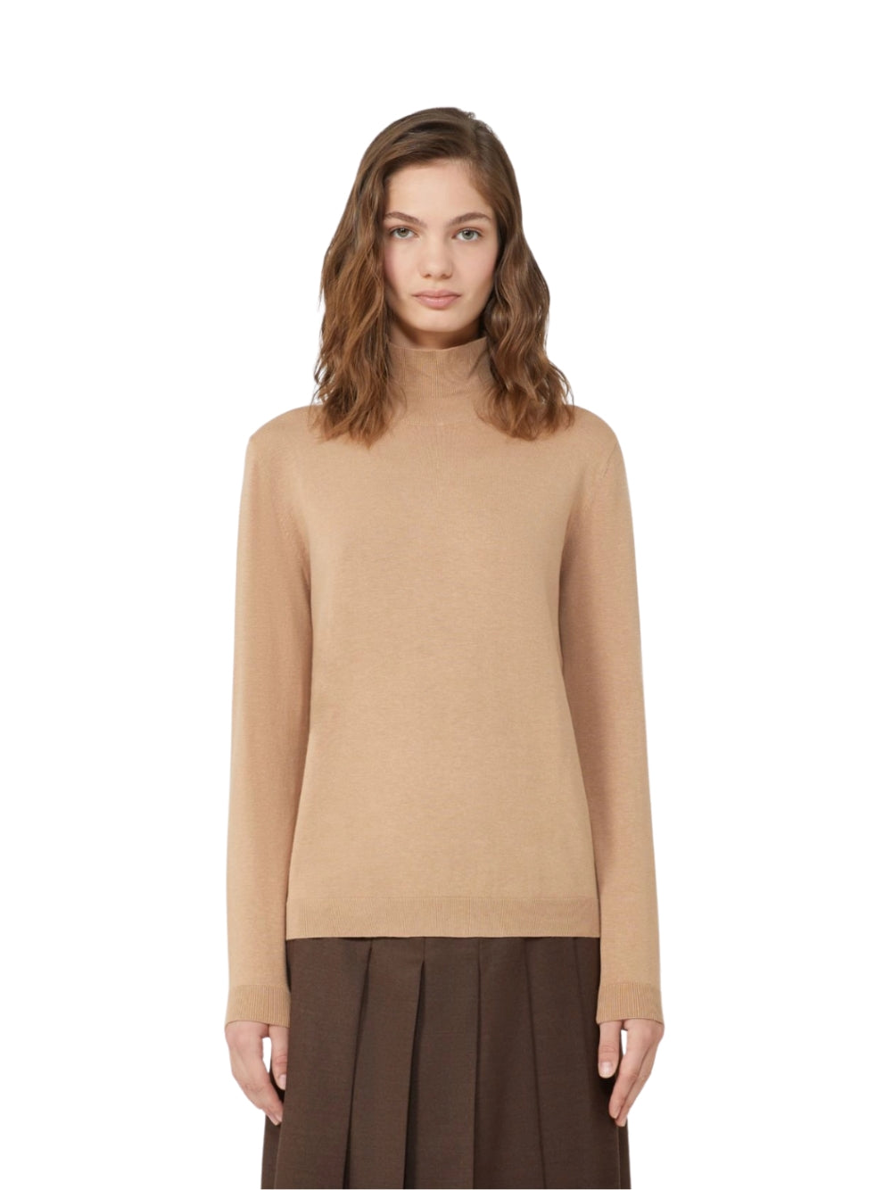 Dolcevita W. Max Mara, in filato di seta e lana, colore cammello.